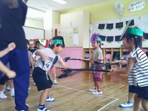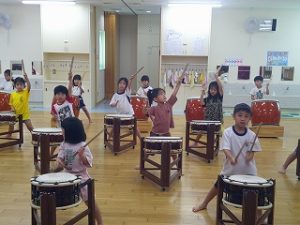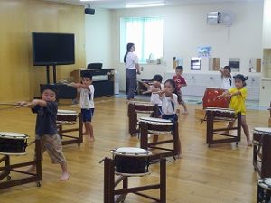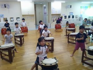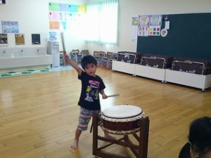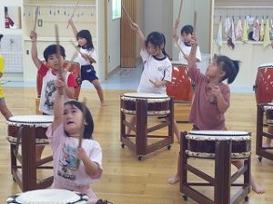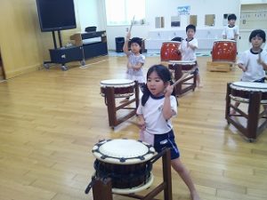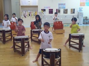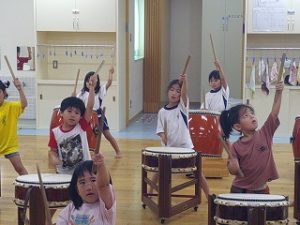 夏まつりが終わり、「お父さん、お母さんにカッコいいって言われた!もっと難しい曲を叩きたい」と達成感を感じ、意欲的に和太鼓に取り組む子ども達です✨