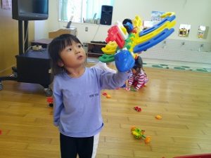 「次は違うおもちゃで遊ぶ!」と沢山のおもちゃを楽しんでいました😊