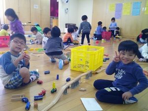 室内では、ブロックやプラレール、折り紙等で遊んでいましたよ!