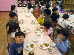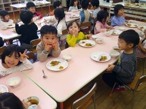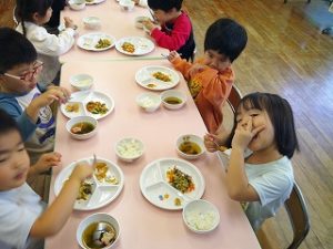 「美味しい!」「全部食べられるよ」と話していた二葉組のお友達。おかわりをする子もいっぱいいて、もりもり食べていました😋
