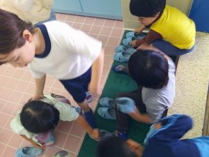 活動の後は美味しいご飯の時間♪ その前にトイレを済ませます。使ったスリッパは綺麗に並べています👏