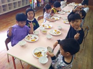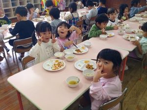 完食したり、おかわりをする子が増えていて、「綺麗に食べたよ!」「いっぱいおかわりできた!」と満足気な子ども達でした😊