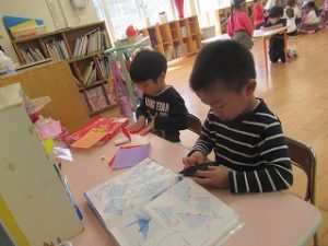 ままごとや紐通し、折り紙等を楽しんでだ子もいましたよ