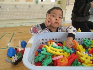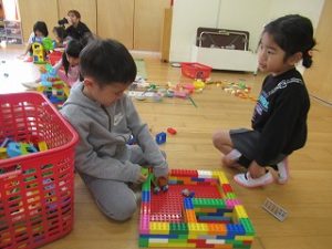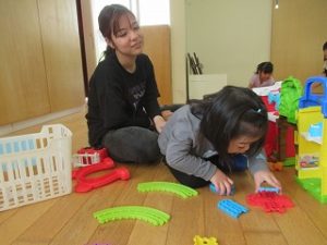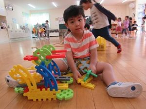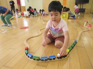 お友達とブロックで乗り物やお家を作ったり、木製のレールを長くつなげたりと楽しんでいましたよ(*^-^*)